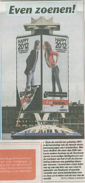 Een van mijn eerste klussen bij Amsterdam & Partners (voorheen Amsterdam Marketing) was de eindejaarscampagne 2011. In deze campagne maakten we van de Overhoekstoren de grootste reclamezuil van Nederland. Na deze eerste volgden nog vele campagnes (samen met o.a. van het Rijksmuseum en het Van Gogh Museum). Inmiddels is de Overhoekstoren volledig gerenoveerd en in 2016 heropend als de A’DAM Toren.
