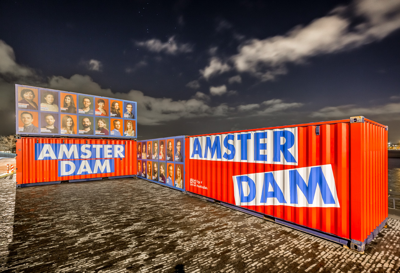 In de huisstijl van de stadsdecoratie van het EU-voorzitterschap is een speciale fototentoonstelling ontwikkeld met portretten van 28 Amsterdammers uit de EU-landen. Deze portretten waren zichtbaar op zeecontainers die rondreisden door de stad. De tentoonstelling maakte onderdeel uit van het project 180 Amsterdammers, een initiatief van o.a. Amsterdam & Partners, AmsterdamFM en de OBA om de diversiteit van Amsterdam te vieren. In dit project werkte ik samen met Xsaga en Studio Dumbar.